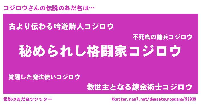 | 男性向けラノベタイトル風あだ名 | 『魔弾の王とコジロウ』 |