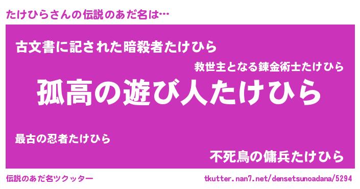 | ヒーロー風カッコイイあだ名 | 『暗黒騎士タケ』『ウルトラ戦士タケヒラ』 |