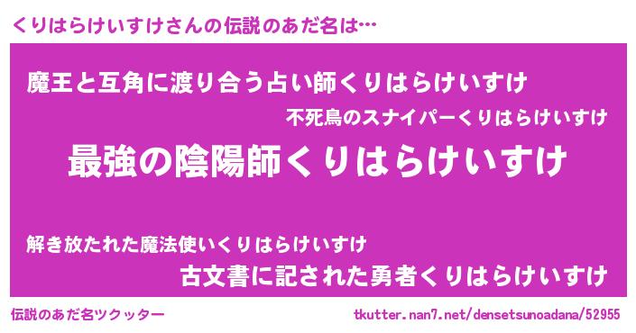 | 意味不明あだ名 | 『くりはらけいすけフォーエバー』 |