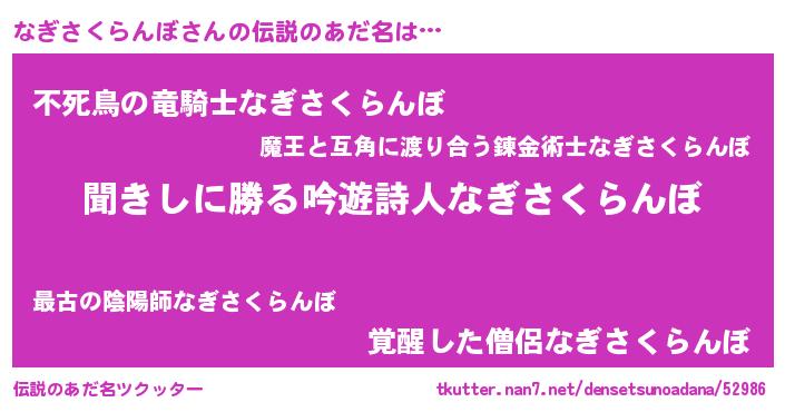 | 意味不明あだ名 | 『永久保存なぎさくらんぼ』 |