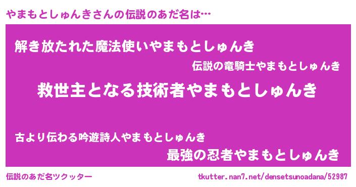 | ポケモン風あだ名 | 『ヤックウザ』『ヒヤマモトシュンキ』 |