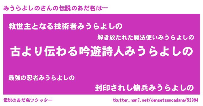 | 意味不明あだ名 | 『永久保存みうらよしの』 |