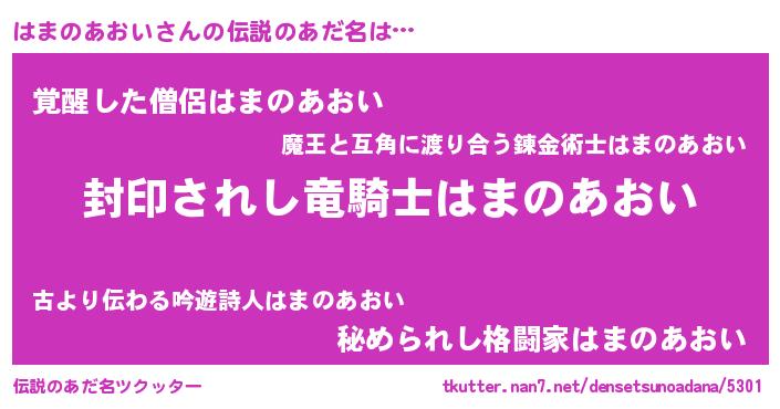 | ヒーロー風カッコイイあだ名 | 『仮面ハマダー』『究極戦士ハマノアオイ』 |