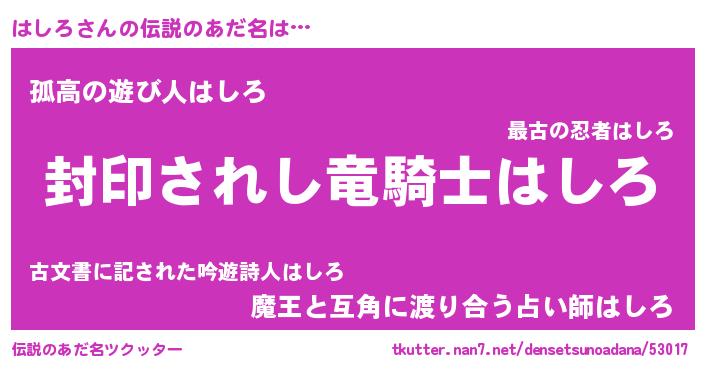 | 意味不明あだ名 | 『自称はしろ』『ペロリンはしろ』 |