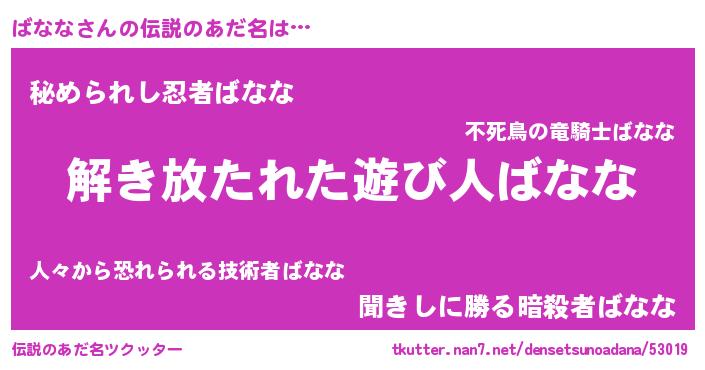 | 意味不明あだ名 | 『とにかく怪しいばなな』『自称ばなな』 |