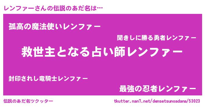 | ヒーロー風カッコイイあだ名 | 『天空の使者レンファー』『暗黒騎士レン』 |