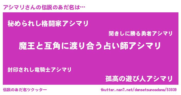 | 男性向けラノベタイトル風あだ名 | 『ノーゲーム・ノーアシマリ』 |