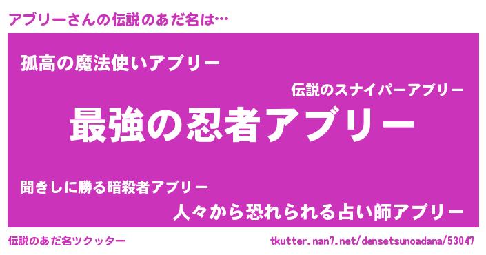 | 意味不明あだ名 | 『住所不定無職アブリー(40歳)』 |