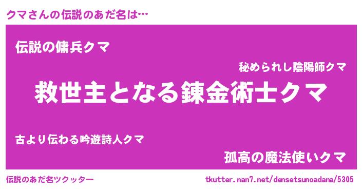 | ヒーロー風カッコイイあだ名 | 『慈愛の使者クマ』『超時空戦士クマ』 |