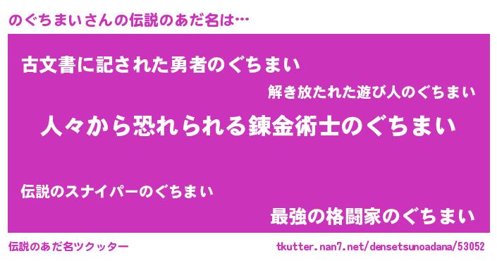 | ヘコむあだ名 | 『のぐちまい(遠い目)』『豆乳』 |