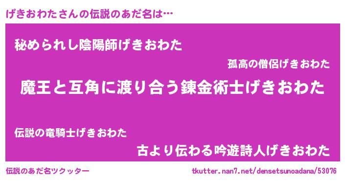 | 意味不明あだ名 | 『住所不定無職げきおわた(89歳)』 |