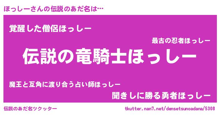 | ヒーロー風カッコイイあだ名 | 『スーパーホッシー』『天弓騎士ホッ』 |