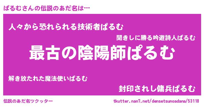 | 男性向けラノベタイトル風あだ名 | 『やはりぱるむの青春ラブコメはまちがっている 』 |