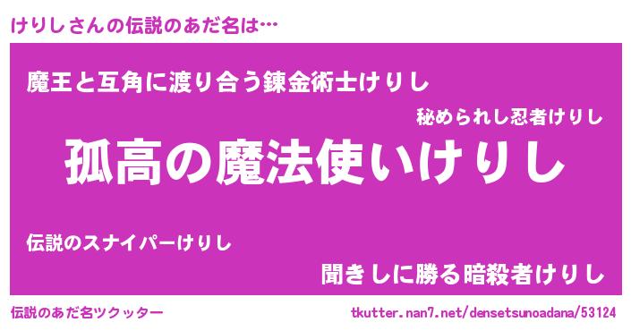 | ヒーロー風カッコイイあだ名 | 『黄金騎士ケリ』『慈愛の使者けりし』 |