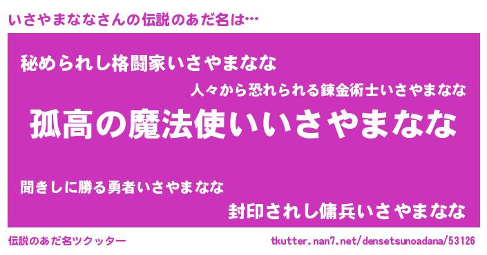 | ヒーロー風カッコイイあだ名 | 『暗黒騎士イサ』『スーパーイサヤマナナ』 |
