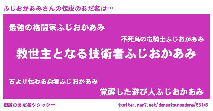 | 肩書あだ名 | 『ふじおかあみ教授』『ふじおかあみ船長』 |