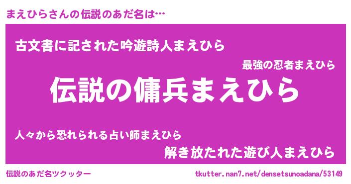 | ヒーロー風カッコイイあだ名 | 『スーパーマエヒラ』『仮面マエダー』 |