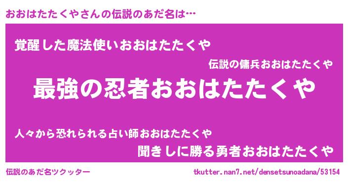 | 意味不明あだ名 | 『おおはたたくやフォーエバー』 |