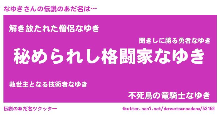 | 男性向けラノベタイトル風あだ名 | 『ナユキスレイヤー』 |