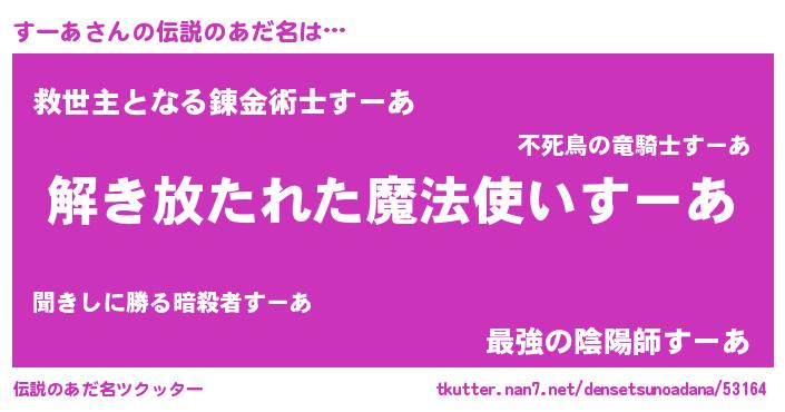 | ヒーロー風カッコイイあだ名 | 『魔戒騎士スー』『究極戦士スーア』 |