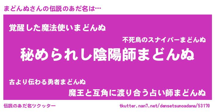 | ヒーロー風カッコイイあだ名 | 『ウルトラまどんぬマン』『炎刃騎士マド』 |