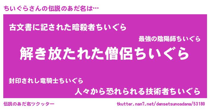 | 意味不明あだ名 | 『とにかく怪しいちいぐら』 |