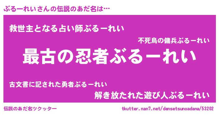 | 男性向けラノベタイトル風あだ名 | 『やはりぶるーれいの青春ラブコメはまちがっている 』 |