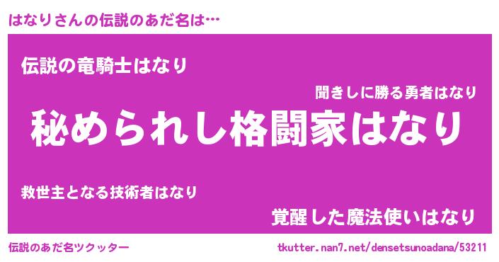 | 胡散臭い通販商品みたいなあだ名 | 『ガンによく効く高麗人参…その名も「はなり」』 |
