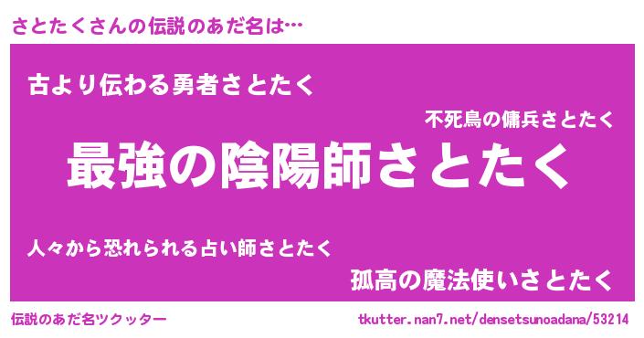 | ファンタジー風あだ名 | 『エターナルサトタクー』『サトフェル』 |