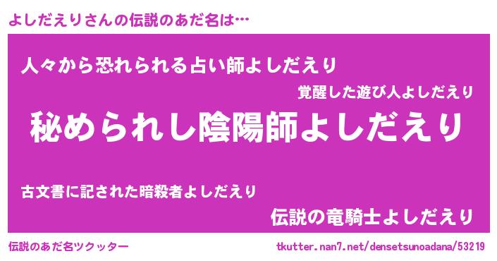 | 女子向けラノベタイトル風あだ名 | 『よしだえりなんてお断りですっ。』 |