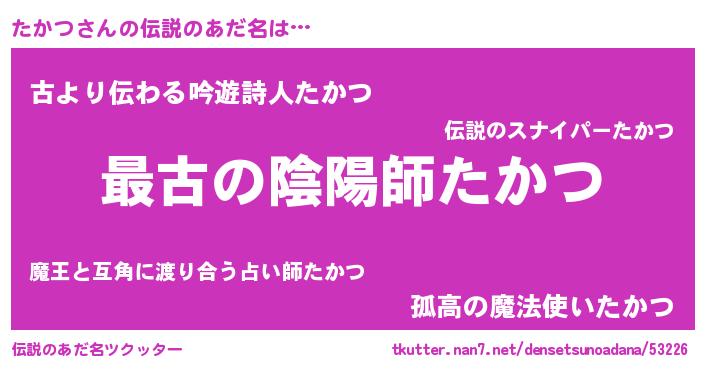 | ファンタジー風あだ名 | 『エターナルタカツー』『カークタカラー』 |