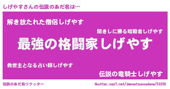 | 意味不明あだ名 | 『しげやすフォーエバー』 |