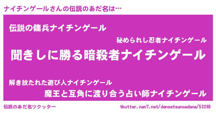| 胡散臭い通販商品みたいなあだ名 | 『絶対に幸福をもたらす健康食品…その名も「ナイチンゲール」』 |