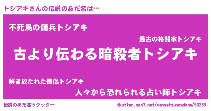 | ファンタジー風あだ名 | 『カークトシラー』『トシディッシュ』 |