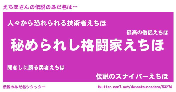 | ヒーロー風カッコイイあだ名 | 『ウルトラえちほマン』『スーパーエチホ』 |