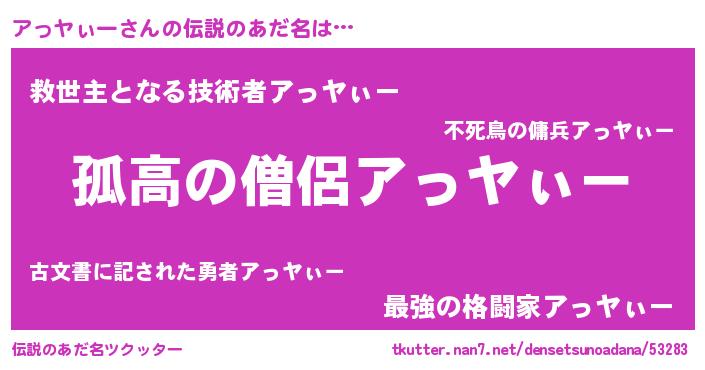| 意味不明あだ名 | 『とにかく怪しいアっヤぃー』 |