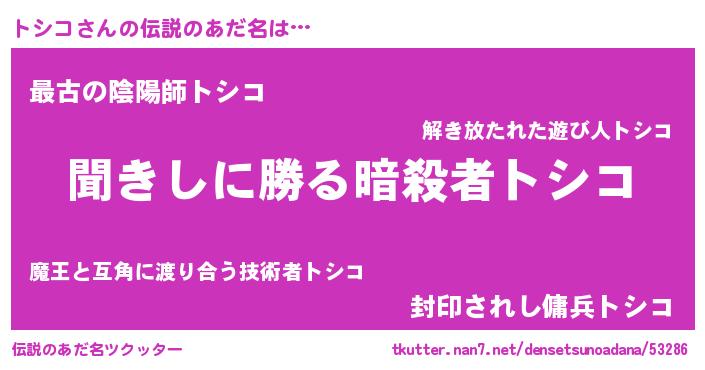 | 意味不明あだ名 | 『永久保存トシコ』『トシコフォーエバー』 |