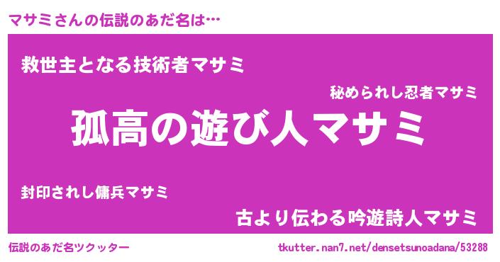 | ヒーロー風カッコイイあだ名 | 『ウルトラ戦士マサミ』『炎刃騎士マサ』 |