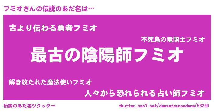 | ファンタジー風あだ名 | 『エターナルフミオー』『フミディッシュ』 |