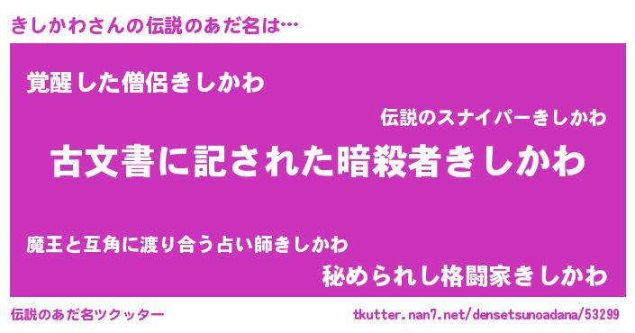 | 意味不明あだ名 | 『永久保存きしかわ』 |
