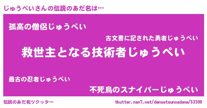 | ヒーロー風カッコイイあだ名 | 『天空の使者じゅうぺい』『黄金騎士ジュ』 |
