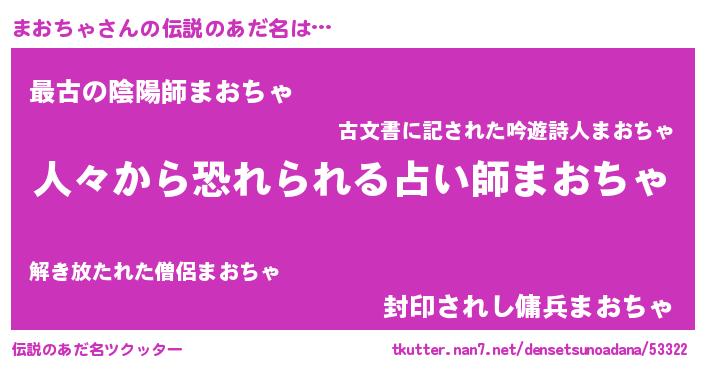 | ヒーロー風カッコイイあだ名 | 『正義の使者まおちゃ』『仮面マオダー』 |