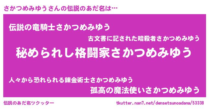 | 意味不明あだ名 | 『さかつめみゆうフォーエバー』 |