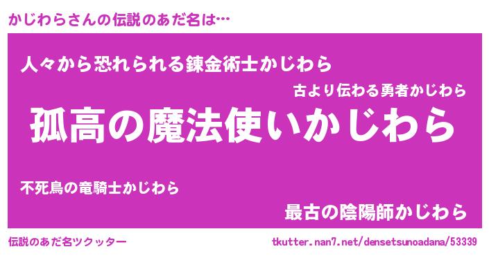 | ヒーロー風カッコイイあだ名 | 『黄金騎士カジ』『正義の使者かじわら』 |
