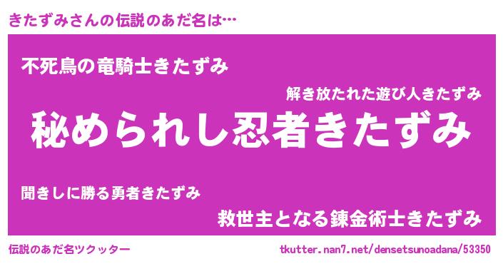 | ヒーロー風カッコイイあだ名 | 『ウルトラきたずみマン』『仮面キタダー』 |