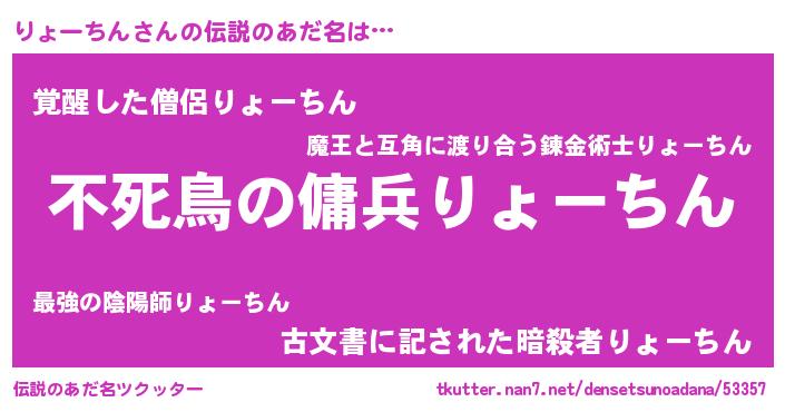 | ヒーロー風カッコイイあだ名 | 『スーパーリョーチン』『天弓騎士リョ』 |