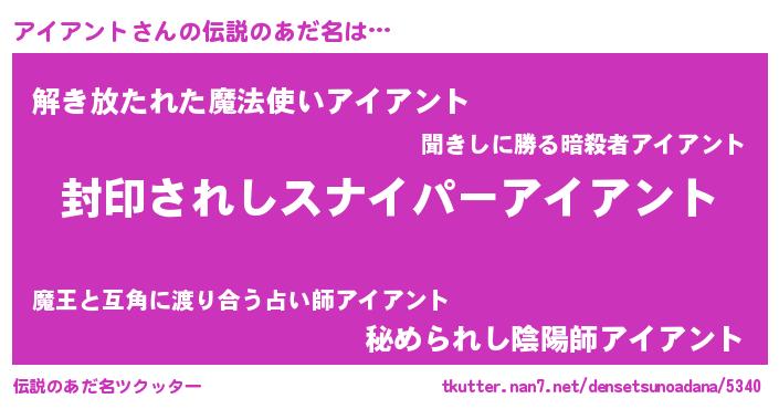 | 胡散臭い通販商品みたいなあだ名 | 『億万長者になれる霊験あらたかなお札…その名も「アイアント」』 |