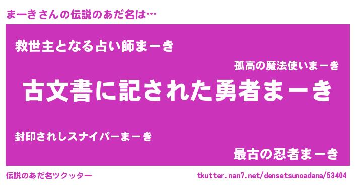 | 意味不明あだ名 | 『ヨモギ科まーき属』『永久保存まーき』 |