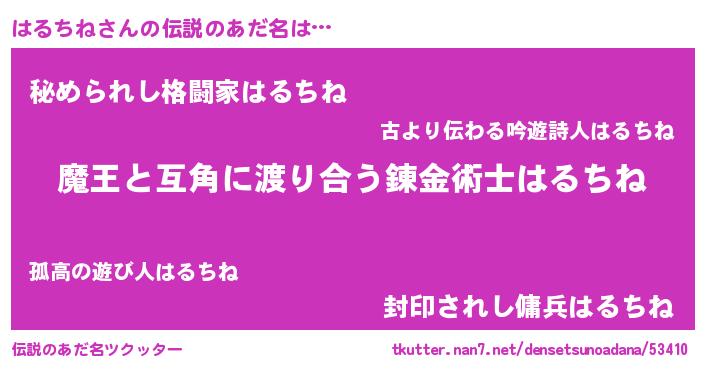 | 女子向けラノベタイトル風あだ名 | 『はるちね恋絵巻』 |