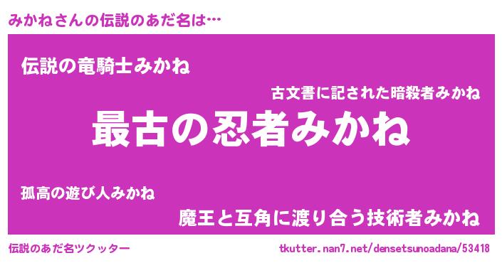 | 意味不明あだ名 | 『みかねフォーエバー』『自称みかね』 |